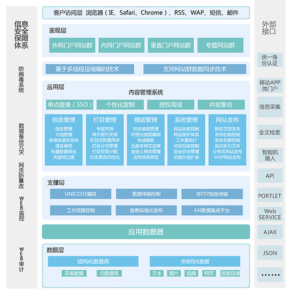 主要解決現(xiàn)階段面臨的信息傳播方式多,信息錄入需要多次重復(fù)錄入,管理平臺(tái)不統(tǒng)一的核心問(wèn)題。覆蓋電腦、微信、微網(wǎng)、手機(jī)、移動(dòng)客戶(hù)端多種渠道。提供統(tǒng)一管理,一次錄入,多屏、多終端、多渠道發(fā)布。