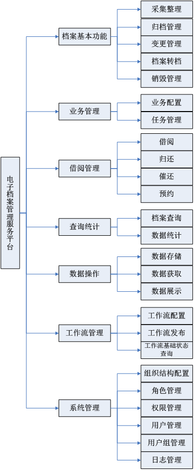 檔案管理系統主要分為:電子文件管理中心子系統、數字檔案管理子系統、檔案檢索子系統,三大子系統。 具有系統設置、權限管理、數據錄入、整編組卷、檢索利用、借閱、銷毀、統計報表、數據轉換等功能模塊。 可在網絡環境下實時瀏覽檢索到的檔案文件、圖像、圖形等,還可在權限允許范圍內下載檔案。可將檔案部門現有的檔案目錄管理系統中的數據直接轉入新的企業檔案管理系統,可在系統中繼續管理上傳文件,提供借閱、歸還、催還等功能。