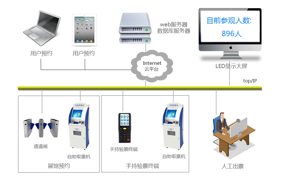 售檢票管理系統集成了智能道閘、自助取票機、身份證閱讀器、出入口紅外計數器、電子大屏、門票打印機、手持智能終端等硬件設備,利用現代的科技手段代替傳統的售檢票方式,通過微信自助預約參觀門票,通過身份證或二維碼自助取票,道閘智能識別門票進行參觀游覽,系統自動實時統計參觀人數。高度智能化自動化,減少人工干預。所有售檢票數據全部記錄在數據庫內,可以實現所有的統計與結算的自動化,快速準確的得到所有票務信息,對于提高科技館、博物館、景區景點的現代化管理水平有著顯著的經濟效益和社會效益。
