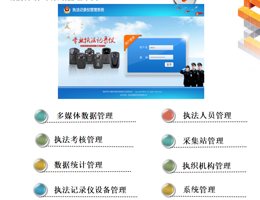 執(zhí)法記錄儀管理平臺是執(zhí)法人員出警佩帶執(zhí)法記錄儀的一個管理平臺,整個平臺由執(zhí)法管理平臺;執(zhí)法記錄儀,記錄儀采集站三部分構(gòu)成。