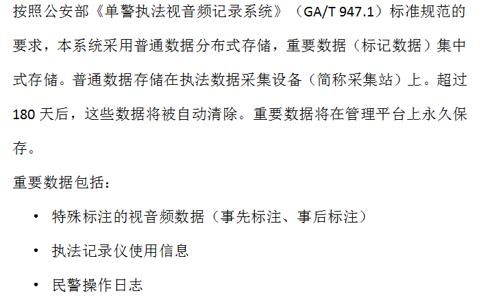 實現(xiàn)了對執(zhí)法記錄儀數(shù)據(jù)的統(tǒng)一管理,包括存儲期限、訪問權(quán)限、安全審計、歸檔、備份、刪除等整個生命周期的管理。